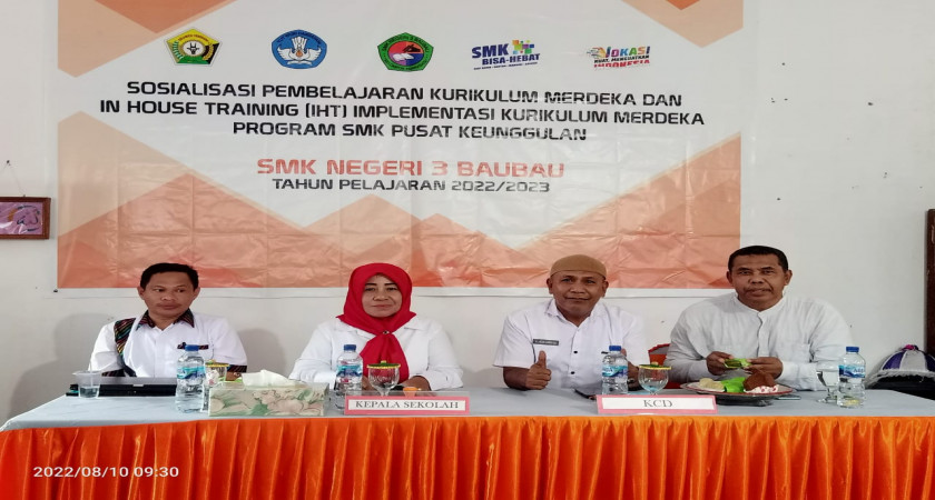 SMKN 3 Baubau mengadakan Sosialisasi Pembelajaran Kurikulum Merdeka dan In House Training (IHT) Implementasi Kurikulum Merdeka Program SMK Pusat Unggulan yang dilaksanakan pada tanggal 10 Agustus 19 Agustus 2022